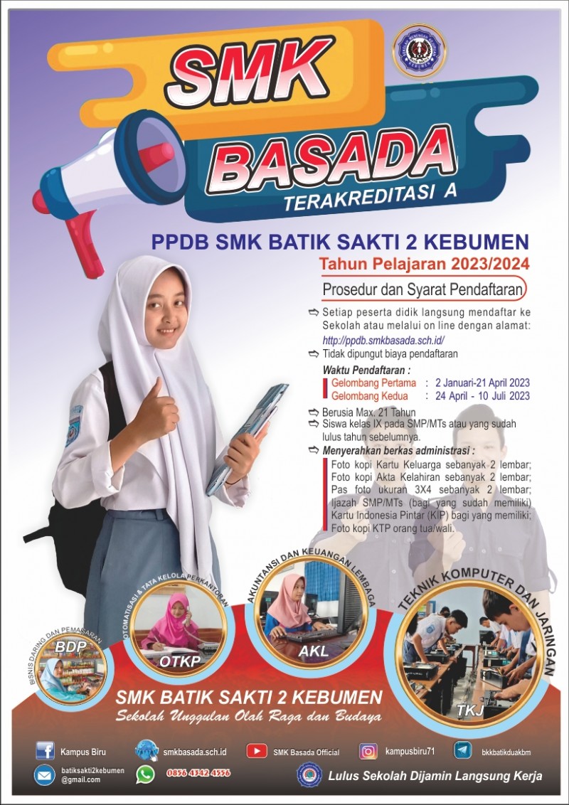 Welcome to SMK Basada Kebumen, Selamat datang di dunia pendidikan SMK Basada, Kami merasa sangat bangga mendapatkan perhatian dan kepercayaan dari Bapak-Ibu sekalian. Kami akan berupaya untuk dapat menjalankan amanah ini dengan baik agar pertanggung jawaban di hadapan Allah SWT kelak menjadi ringan.